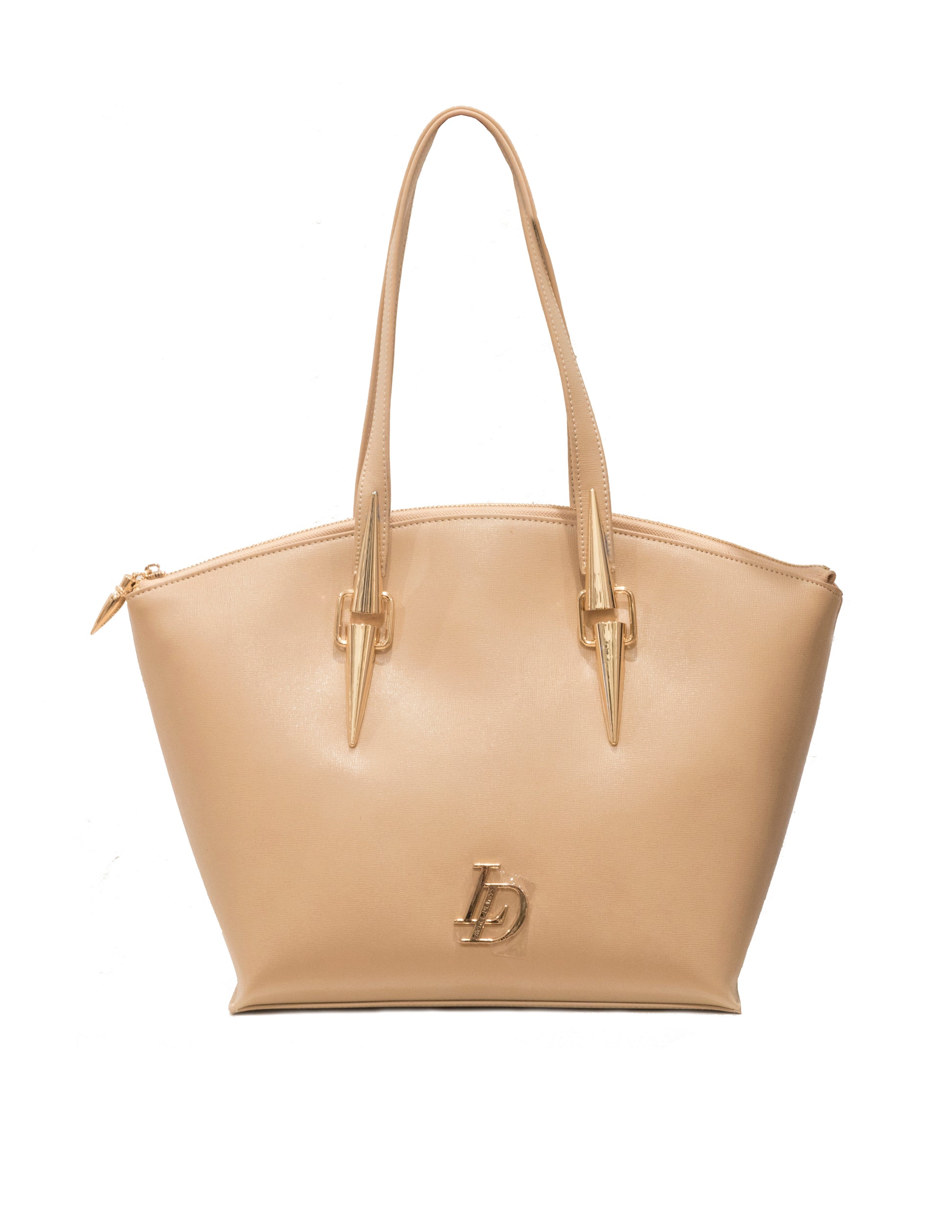 This is the perfect bag to wear to work, shop, or to a day party! Features chic spike hardware and a LD logo plate to represent on the front. The back has a zipper pocket to ensure easy access to your essentials. The Inside, of course, has our signature silk lining and a back wall pocket.
